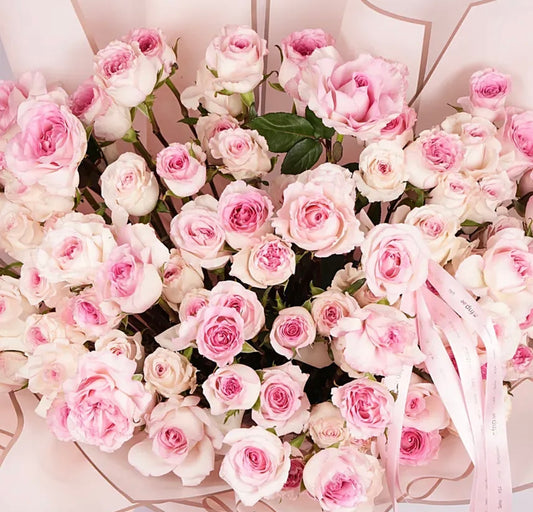 100 Pink Roses Bouquet with White wraping