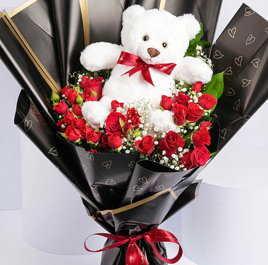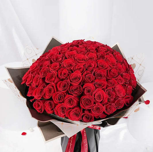 100 Red Roses Bouquet with White Wrapping
