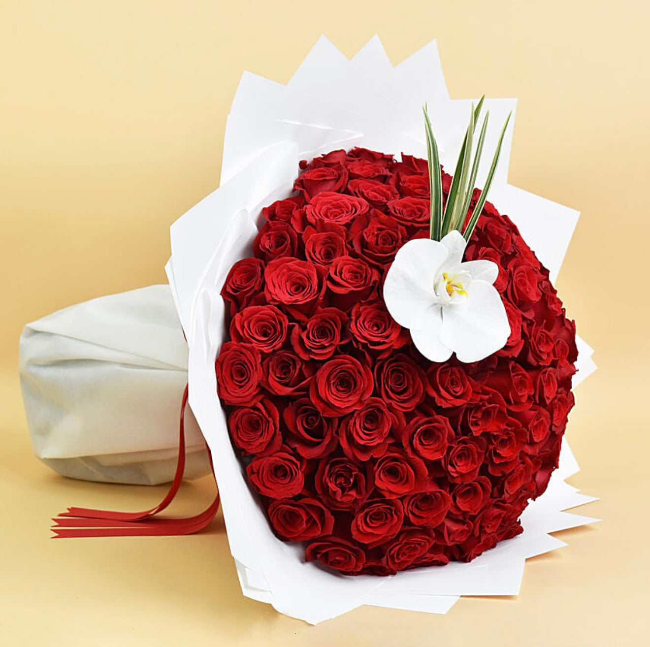100 Red Roses Bouquet with White Wrapping