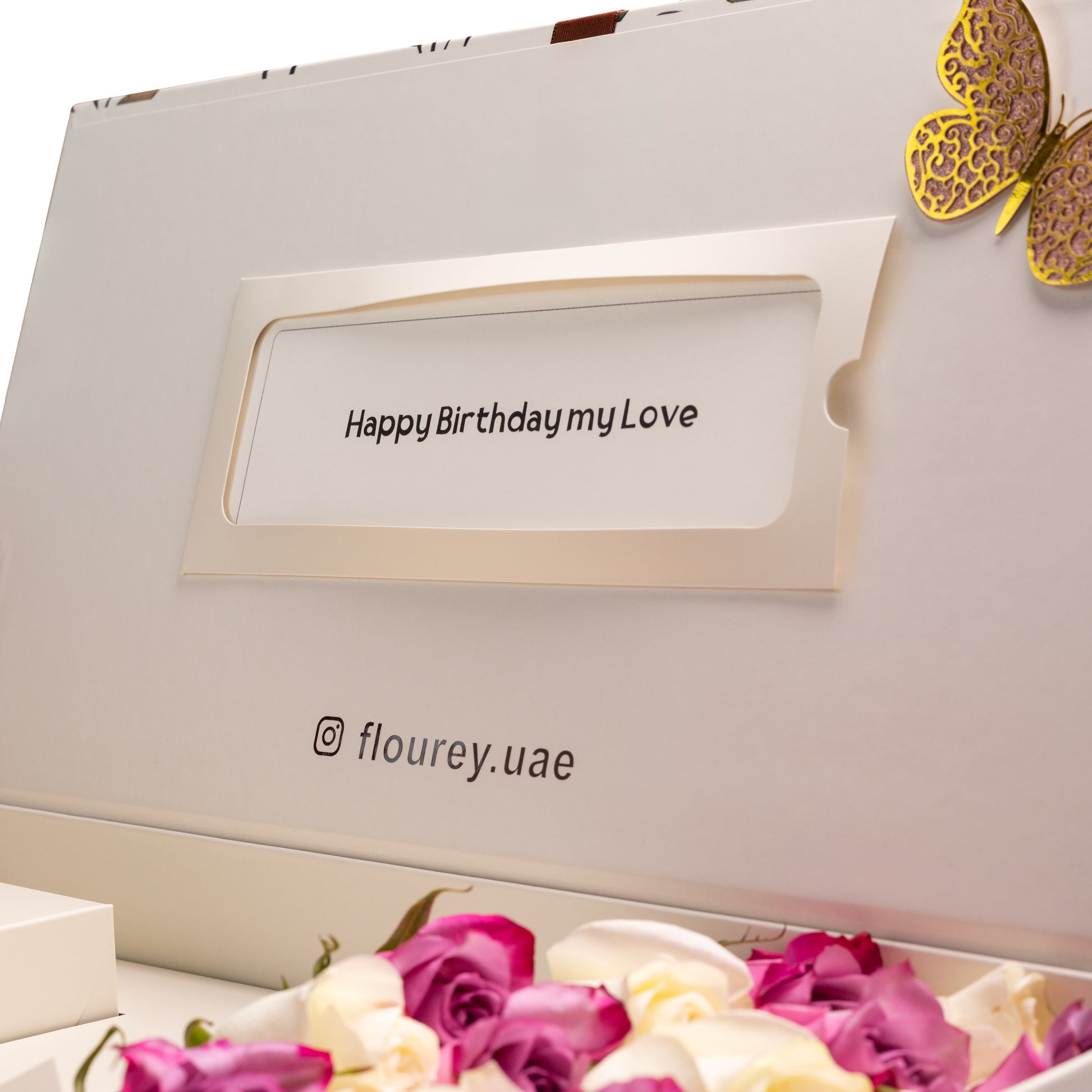 ✍️ اجعلها أكثر تميزًا برسالة مخصصة على الصندوق وبطاقة مليئة بالمشاعر داخلها.