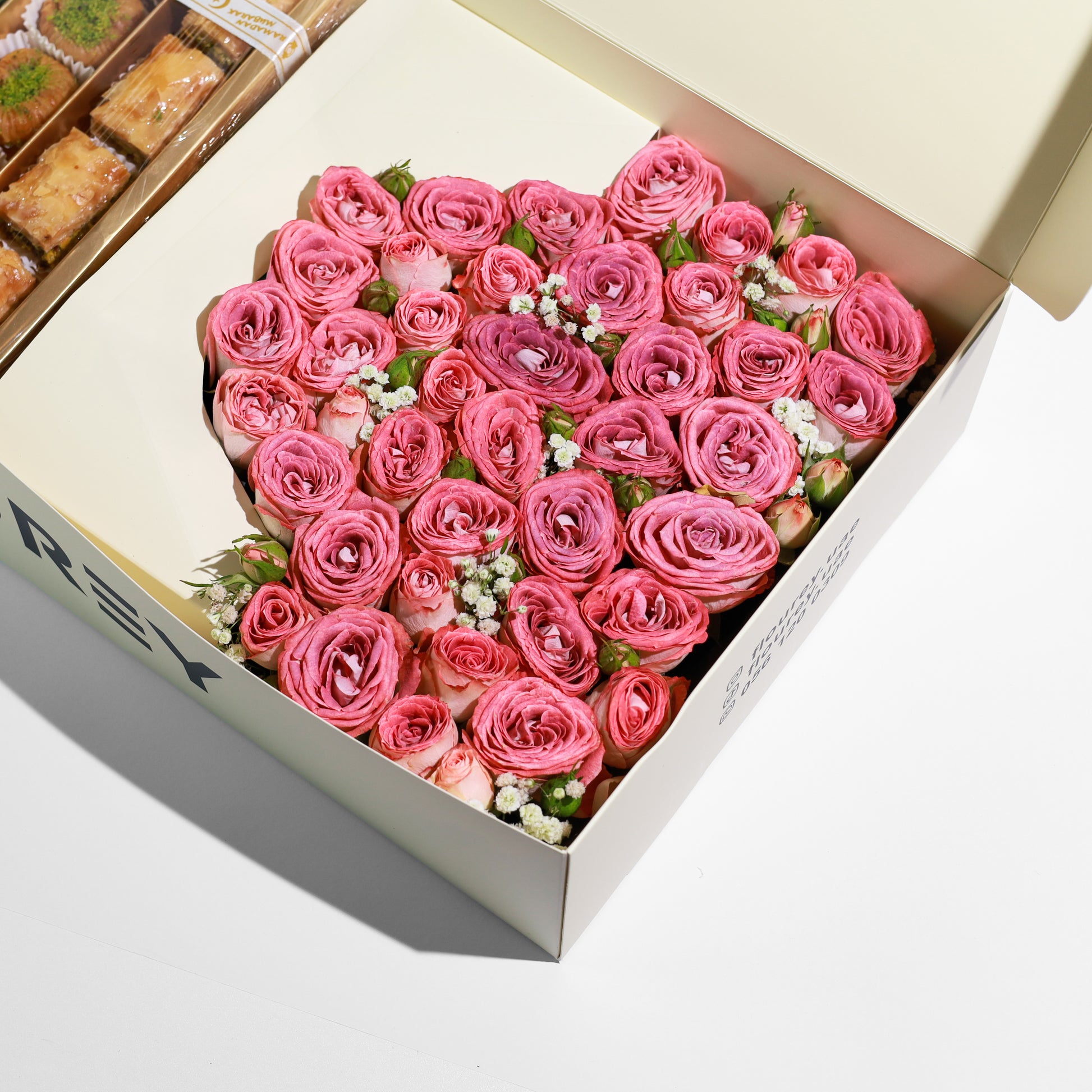 ✍️ رسائل شخصية: إلى جانب الزهور والحلويات، يحمل صندوقك صوتك. تلتقط ملاحظة جريئة على الصندوق لفتتك الرائعة، بينما تهمس بطاقة سرية بداخلها بمشاعرك الحميمة.