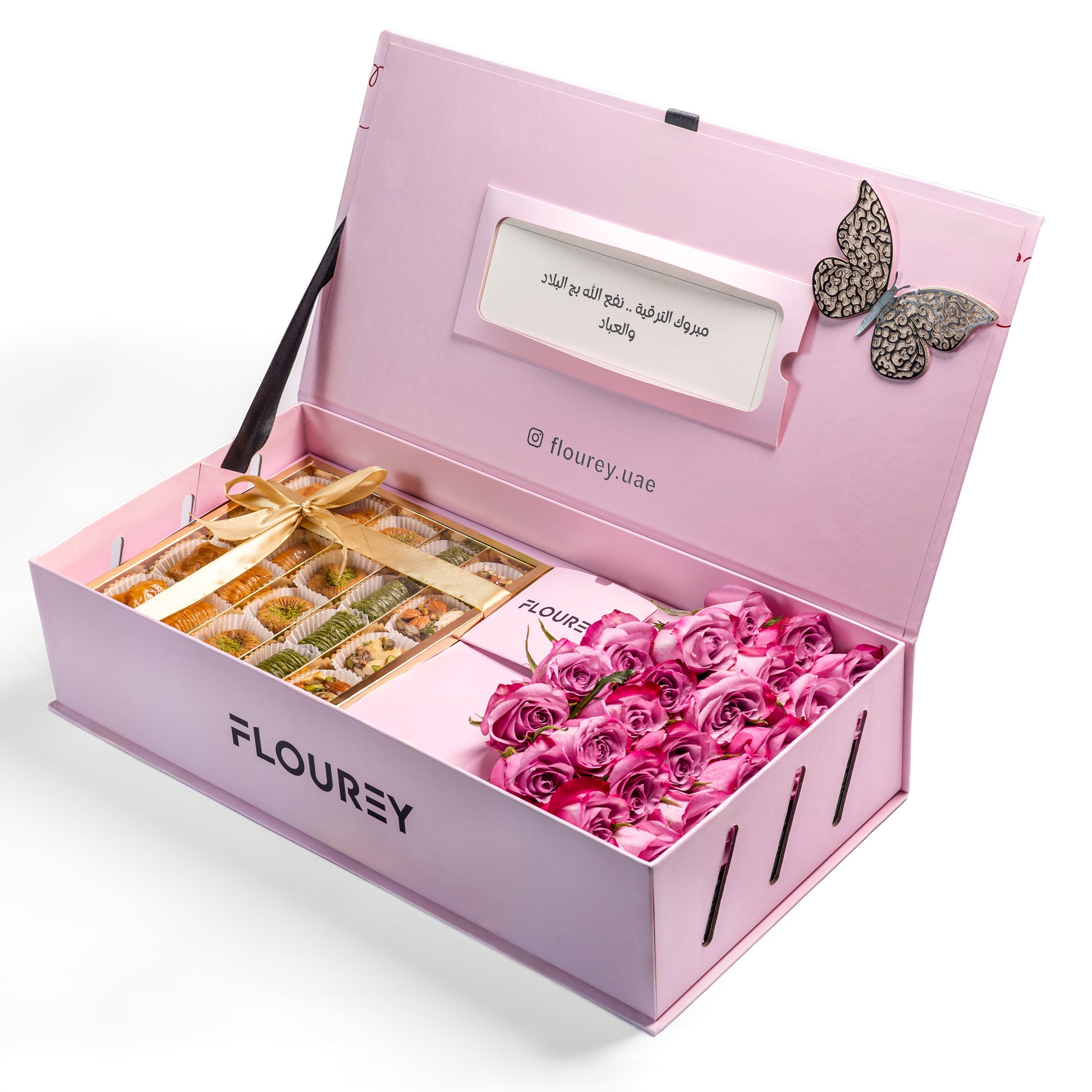 🍫 أضف لمسة خاصة لهديتك مع الشوكولاتة أو التمر أو كعكة لذيذة.