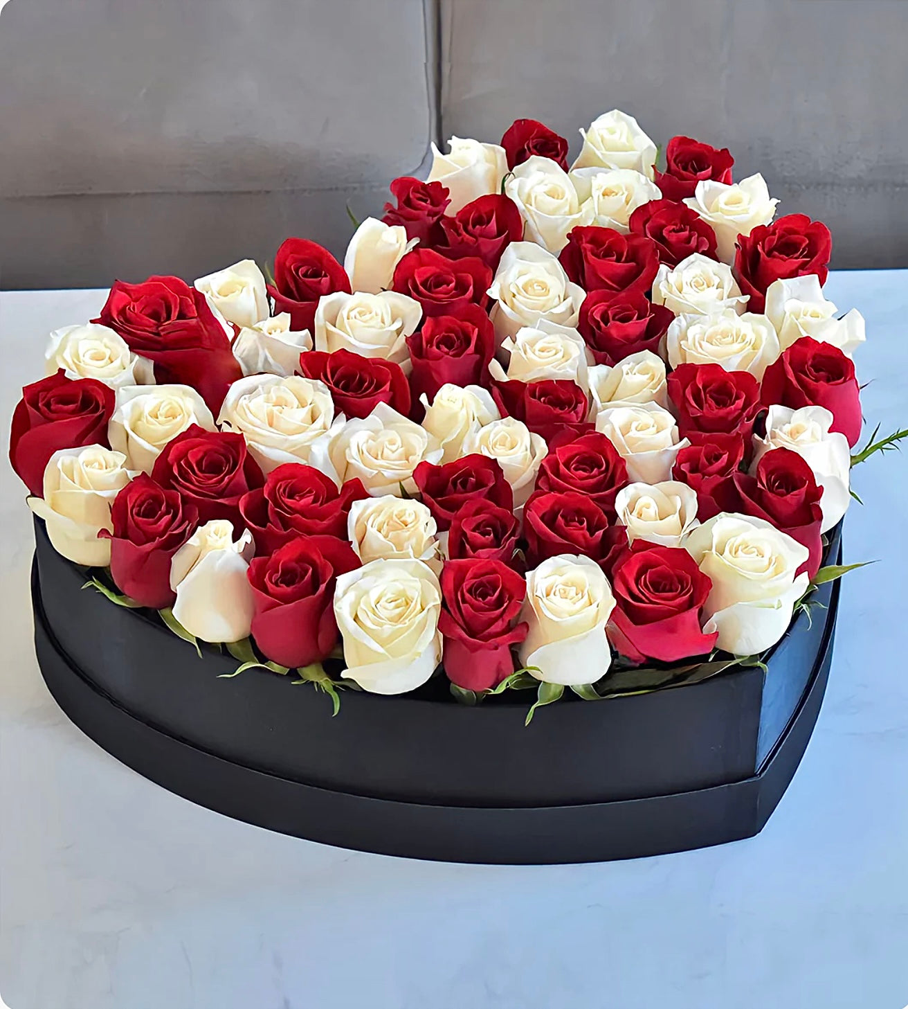 Heart box with White and Red Roses