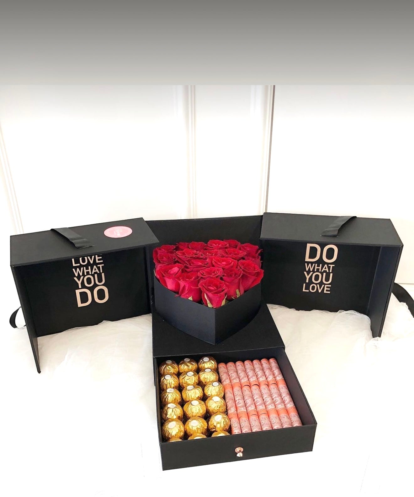 ✍️ رسائل شخصية: إلى جانب الزهور والحلويات، يحمل صندوقك صوتك. تلتقط ملاحظة جريئة على الصندوق لفتتك الرائعة، بينما تهمس بطاقة سرية بداخلها بمشاعرك الحميمة.